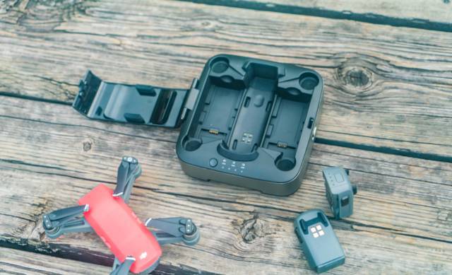 充电盒会优先为飞行器上的电池进行充电,然后根据剩余电量高低依次对其余两块备用电池进行充电。(在使用飞行器的同时,你也可以用充电盒为其余备用电池进行充电)