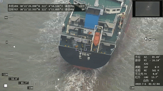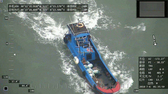 在指挥中心与指挥车内的大屏幕上,可以看到大鹏回传的画面中,货船轮廓清晰可见,船牌号码清晰可见,船上人员活动清晰可见。