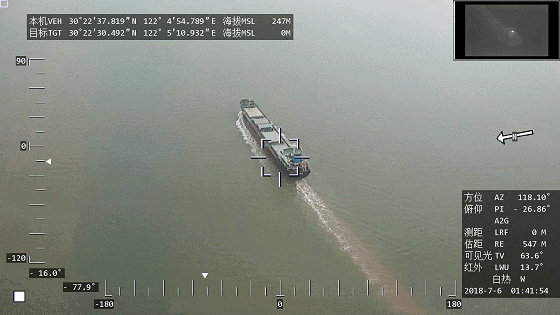 作业过程中,CW-30D大鹏发现几艘渔船,通过变焦识别出渔船编号,并看到船上人员并未捕鱼。随后,在距离渔船4km外发现一艘货轮,CW-30D大鹏轻松识别货轮标号、船上人员活动。