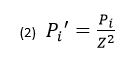 我们将Z称为缩放因子,图像放大后的像素表面称为Pi'。然后我们得到以下等式(2):