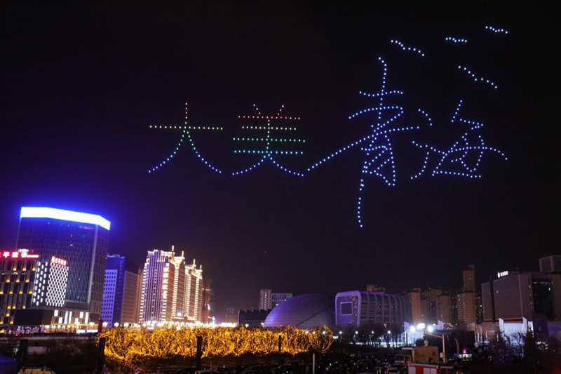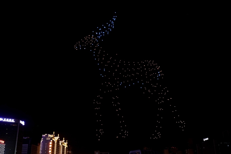 当晚,400台无人机扮靓了西宁的夜空,变换呈现出代表青海文化旅游特色的藏羚羊、大美青海等图案和文字,上演了一场特别的灯光秀。