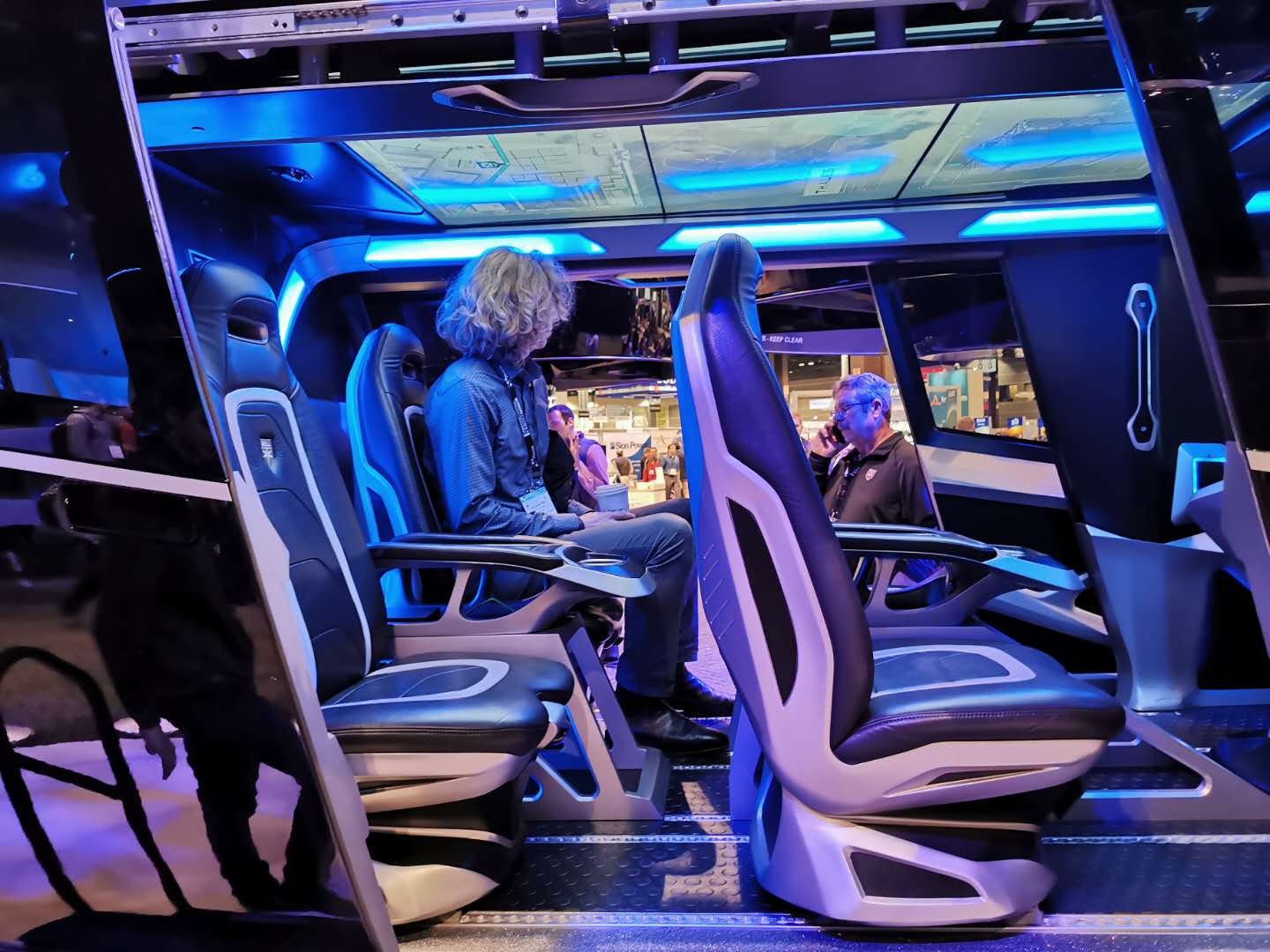 关于动力系统,Bell Nexus采用了混合动力系统,在起落飞行时噪音控制会非常出色。同时,Nexus载人飞行器可搭载4个乘客,可续航1小时,现场有许多观众亲自登驾体验,头顶是液晶显示面板可以实时查看飞行路线及情况。不过,展会现场所展示的只是原型机只用来动态展示,贝尔表示它将于2023年开始测试Nexus。