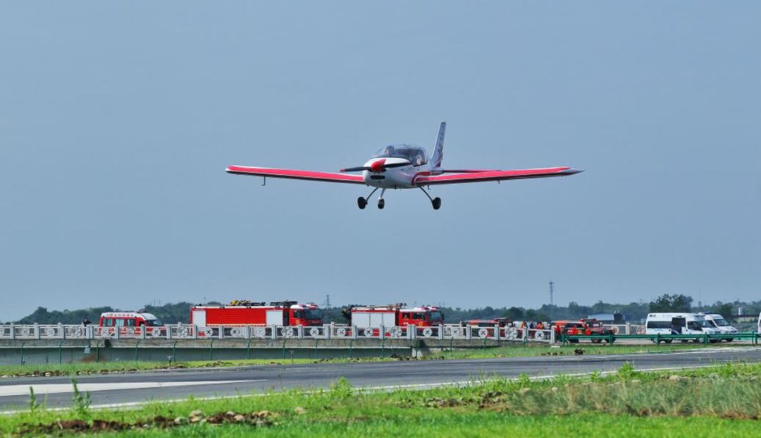 “塔台上午好,山河通航B-10KG检查好,请示开车。”“B-10KG检查好,可以开车”。随着开车指令下达,山河通航陈纯麒教员接通飞机启动按钮,飞机螺旋桨加速旋转,随后飞机缓慢滑入跑道。上午10点整,成都山河航空产业基地SA60L飞机(阿若拉)在成都“淮州新城”(金堂通航产业园)成功首飞。
