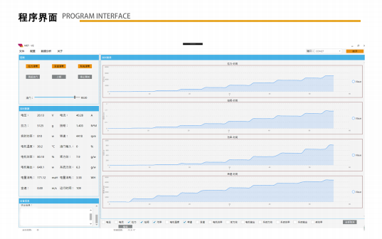 (2)测试数据包括:电流、转速、扭矩、拉力、输入功率、电机输出、电机功率、桨效、系统力效、电机温度。测试完成,测试完成出具专业动力测试报告。