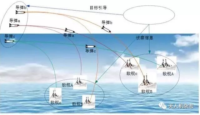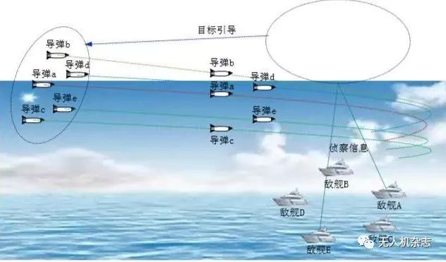 无人机和巡航导弹自主协同作战,可使两种武器优势互补、分工协作,最大限度发挥体系作战效能。无人机具有造价低廉、可大量部署等优势以及其自杀式攻击作战方式,使敌方海上力量防不胜防,而巡航导弹具有高机动性、高毁伤性、精准打击特性,有效弥补了无人机在该方面的不足。无人机群可以实时抵近跟踪监视敌方海上动态目标变化,为巡航导弹集群及时修改目标坐标、进行不间断打击提供信息支持,同时,无人机群可以及时进行敌方目标毁伤评估,为指挥员判断火力打击效果评估提供重要依据。未来海上作战,面对敌方全方位、多层次的防御体系,要实现对敌方关键目标的精确打击,利用无人机与巡航导弹集群自主协同作战,能够充分发挥无人机自主灵活和巡航导弹生存能力强等作战优势,实现武器平台的优势互补,极大提高巡航导弹饱和攻击的作战效能。