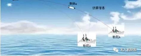 网络中心战的核心是通过战场网络实现数据在传感器与打击平台之间的实时高效流转,在广域海战场内对无人机群进行前沿部署、抵近侦察、及时跟踪、高效监视,有效获取事先无法侦察的敌方动态目标特征,利用战场网络将这些目标特征信息实时传输给巡航导弹,进行目标引导和坐标校正。由于巡航导弹的射程距离远,单纯依赖卫星导航,存在易遭受敌方干扰、难以保密等问题,从而影响对敌方动态目标的精准打击。海战场环境缺乏精确明显的目标定位特征,对敌方动态目标难以实现实时感知、精确定位,利用长航时无人机实时跟踪监视敌方动态目标变化,依据战场态势和战场环境的变化,灵活修改巡航导弹飞行路径,引导巡航导弹从最易直接命中目标要害部位的方向对敌方动态目标实施精准打击。