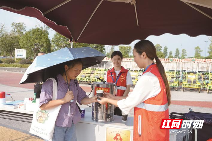 松雅湖国家湿地公园内,“红马甲”志愿者们面带微笑为游客提供各种便民服务