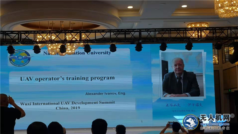 亚历山大·伊万诺夫院士介绍了乌克兰国立航空大学的学校背景,及其在无人机领域的教学培训优势。近年来该校已经为乌克兰国内多个组织以及全球140多个国家培训了逾20万飞行员。