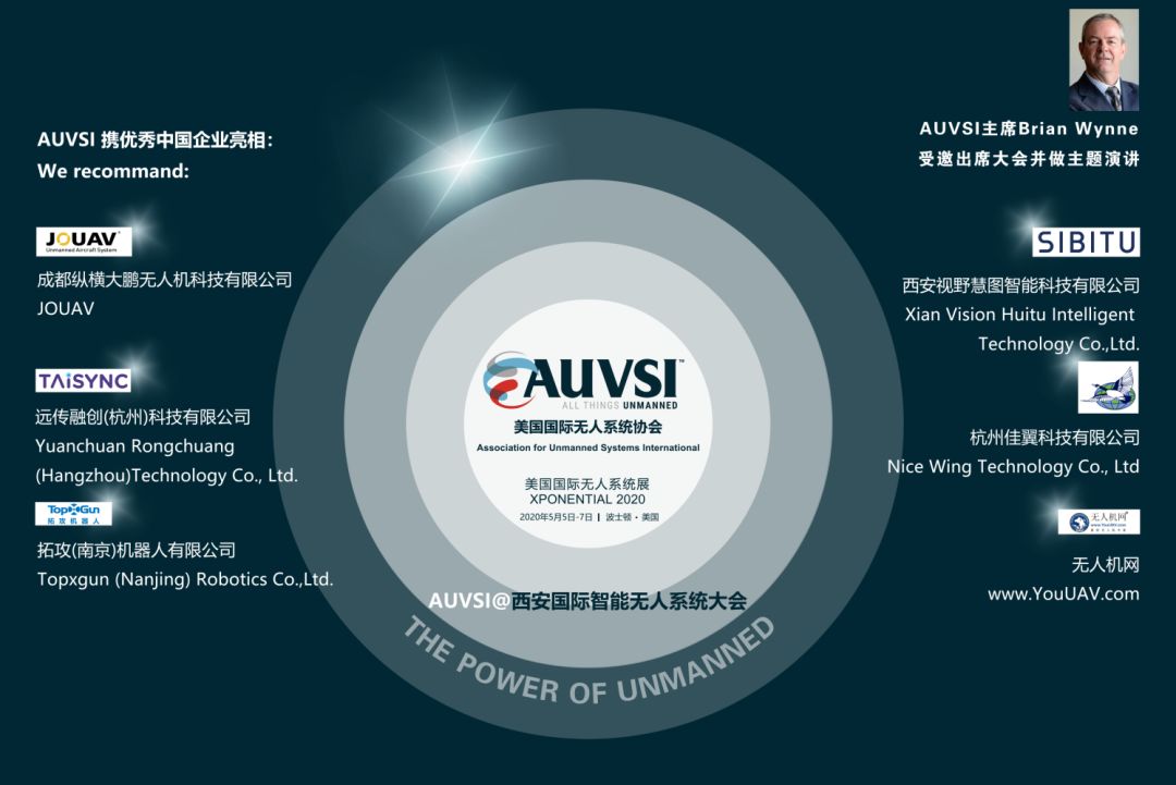 作为国际支持单位受邀参展 ,AUVSI不仅为中国观众带来国际无人系统产业的最新资讯,也在现场推介全球顶尖的工业级无人系统展即2020年美国国际无人系统展 (XPONENTIAL 2020),邀请中国企业和专业人士参加。与此同时,AUVSI 中国销售中心将携多家国内优秀的无人系统企业,推广其产品:成都纵横大鹏无人机科技有限公司;远传融创(杭州)科技有限公司;拓攻(南京)机器人有限公司;西安视野慧图智能科技有限公司;杭州佳翼科技有限公司。