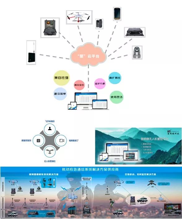慧明捷机动应急指挥平台支持接入微波图传、LTE终端、4G终端、有线监控等多种设备采集的图像,并对接入平台所有前端视频采集设备编号设置、进行精准化管理。慧明捷无人机管理平台可以接入海量的无人机视频监控图像和语音;支持兼容多品牌多型号无人机并进行管理;支持对无人机和飞手信息进行管理和在线查看,可以在线调度人员进行区域协同和就近执行任务;支持实时显示无人机和飞手位置信息,检查考核人员履职情况;便携性好,支持多终端应用;