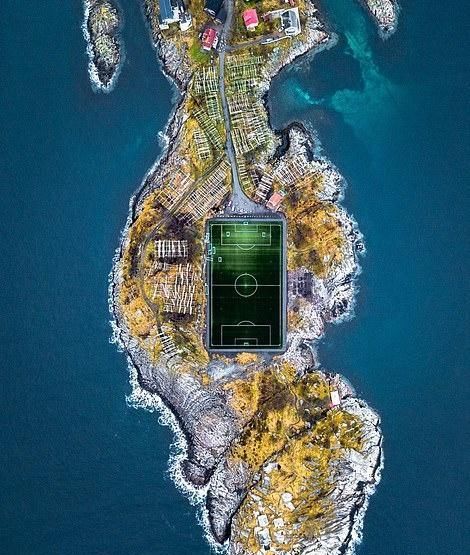 挪威罗弗敦群岛亨宁斯韦尔小岛上的一个足球场。