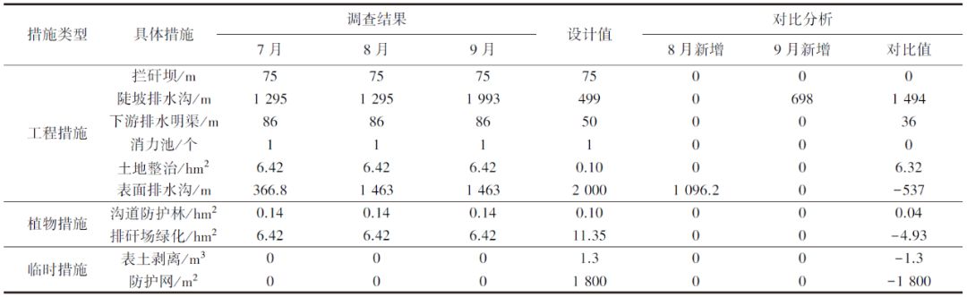 表2 某煤矿项目排矸场水土保持措施调查结果