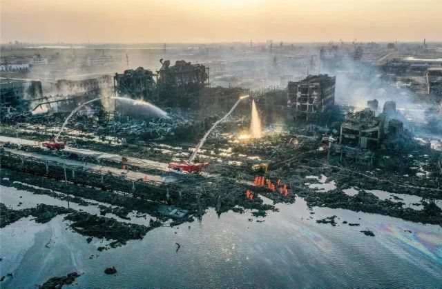 2019年3月23日,江苏省盐城市响水县天嘉宜化工有限公司“3·21”特别重大爆炸事故现场(无人机照片)。