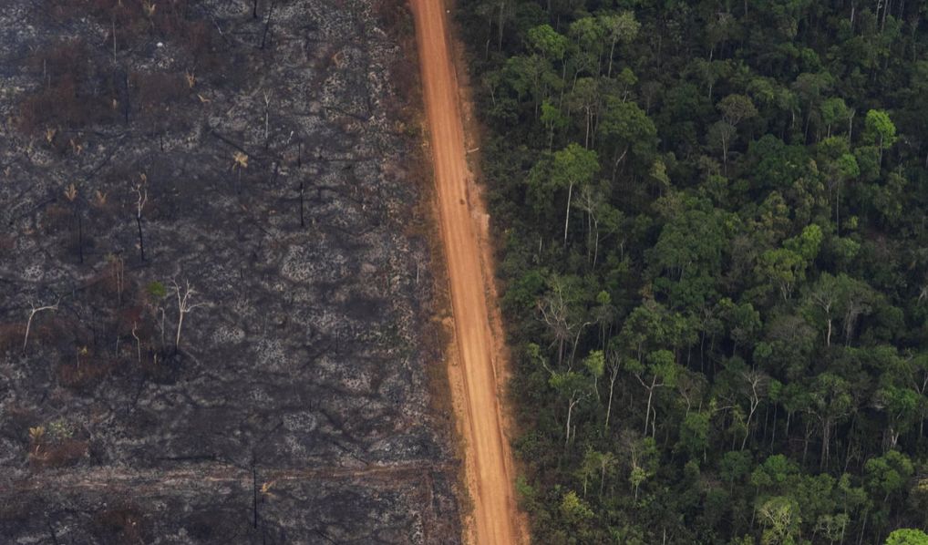 2019年8月27日,巴西新塞缪尔村,一片郁郁葱葱的森林坐落在烧焦的树木旁。今年席卷亚马逊部分地区的大火加剧了全球对气候变暖的担忧,也增加了联合国气候行动峰会的紧迫感。