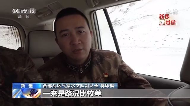 西部战区气象水文队副队长 蒋印祺:这次去的这几个达坂还和其他几个连队不一样,为什么?第一个因为这次这个路况比较差,第二个确实海拔比较高,几个达坂都是4300米以上,有一个达坂还是4900米。所以我们也是硬着头皮上来,因为我们的这个雪深测量仪必须要到有雪的时候才有作用。