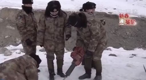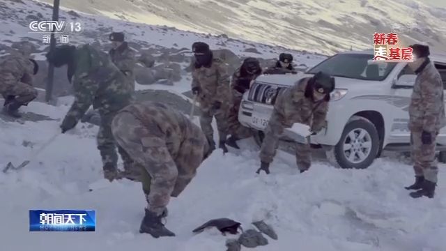 西部战区气象水文队副队长 蒋印祺:你们倒(车)的时候注意啊,就拿把锹拿把镐就对了,陷得有点深。