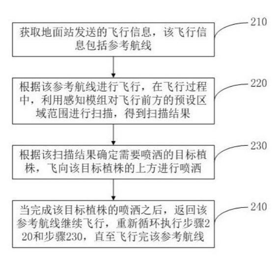 该发明实施例通过感知模组扫描需要喷洒的目标植株,无需提前测绘每棵植株的位置,减少人力物力的支出。