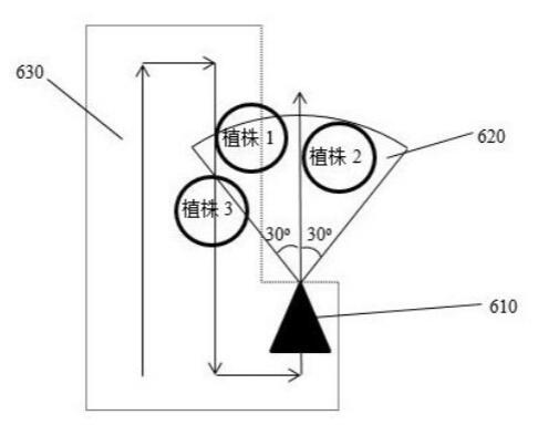 该发明实施例的技术方案,通过感知模组扫描需要喷洒的目标植株,无需提前测绘每棵植株的位置。