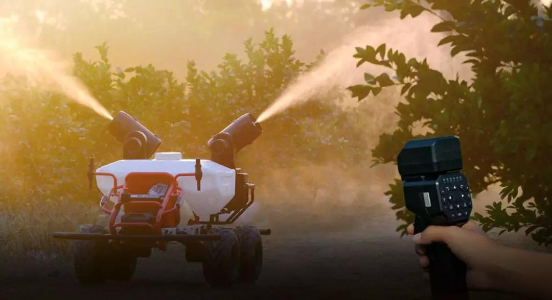 除了,与无人机空地配合进行防疫消杀外,R80农业无人车还具有拓展功能:可搭载气流喷雾机,对果林、大田进行高效精准的植保作业;卸掉药箱还可用于种药肥等农用物资与智能农机设备的配载运输;还可搭载极飞 XIoT 农业物联系统的智能硬件,进行智能巡田与农情监测,实现农田移动物联。
