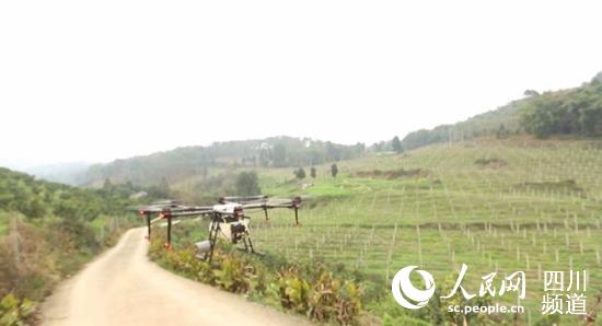 | 一架无人机往来盘旋完成病虫害防护喷洒作业。(邛崃宣传部供图) |
