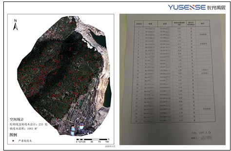 (3)病疫木提取专题地图——标注病疫木位置的遥感专题图,包括空间统计信息;