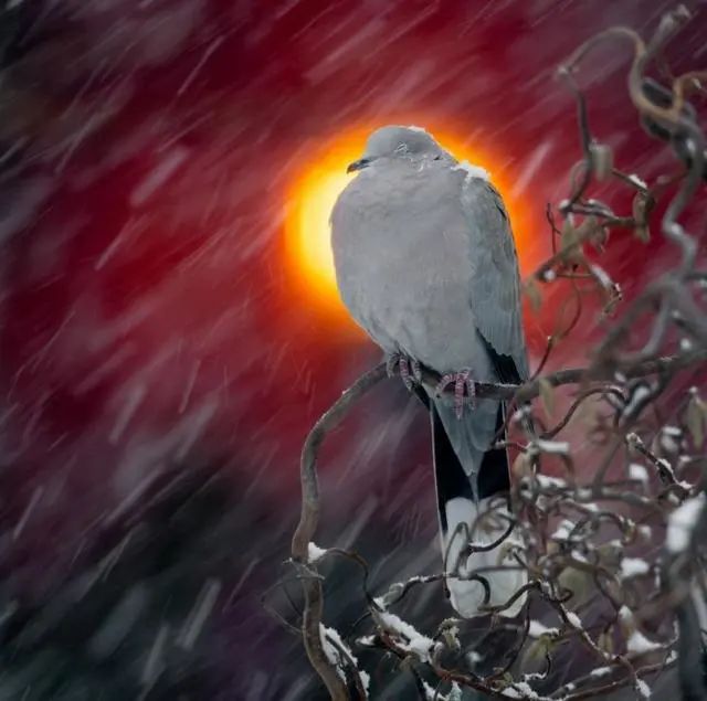 这次令人印象深刻的新摄影大赛的其他亮点包括一幅美丽的无人机照片,显示一群羊在午后的阴影中寻求在阳光下的庇护所,惊恐的猫头鹰被猛扑的寒鸦所惊吓,还有一张令人恐惧的蜘蛛网伪装像等。