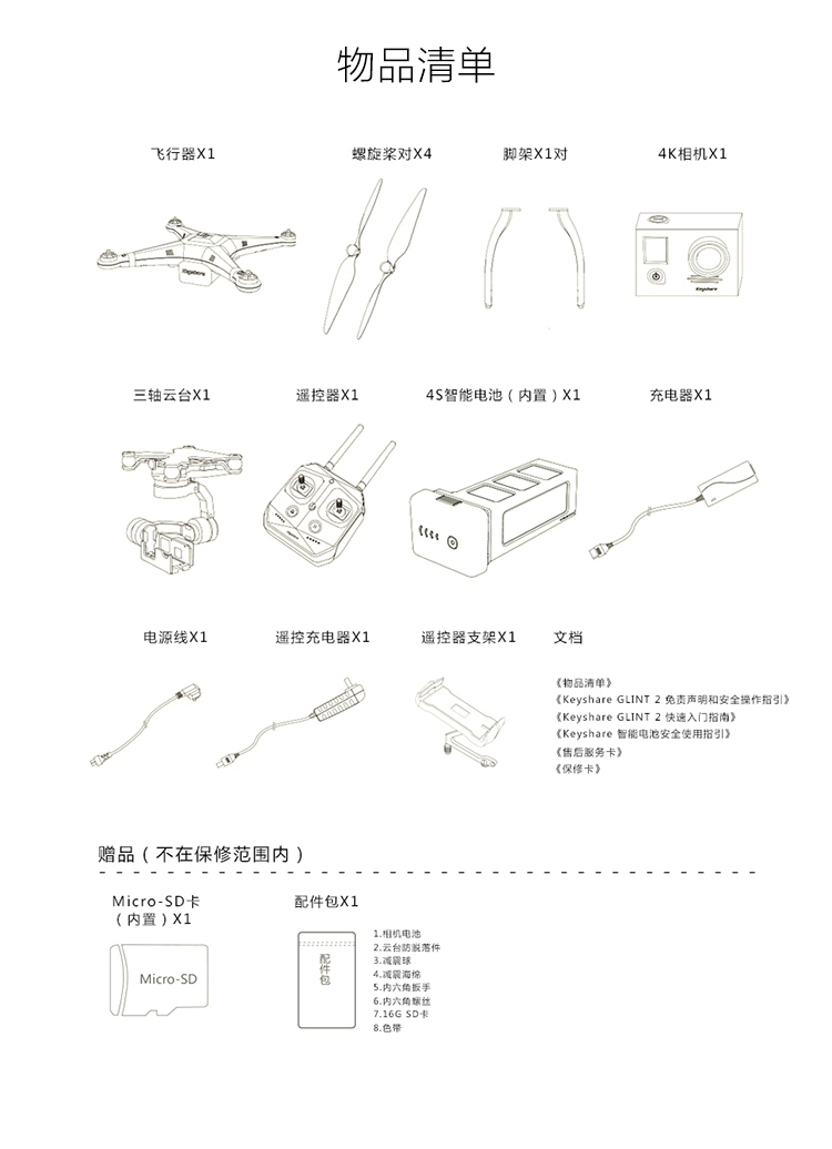 Keyshare基石专业航拍无人机4K高清航拍飞行器遥控飞机四轴飞行器航拍专业GLINT2