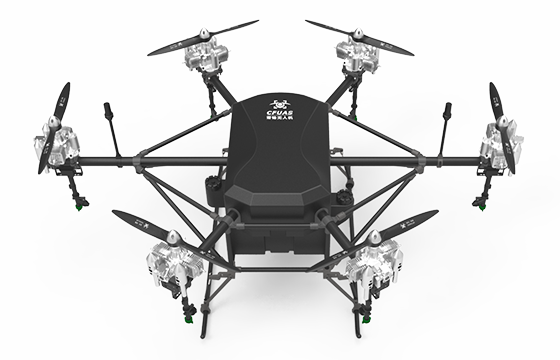 碳纤维和航空铝合金组合的机身结构,保证强度和刚度的同时,减轻了机身重量。搭载六个内燃机提供强劲动力。配备14L油箱和40L药箱。满油满载可持续飞行30分钟,满油(14L)空载可持续飞行50分钟,全负重满油(54L)可持续飞行3个小时。