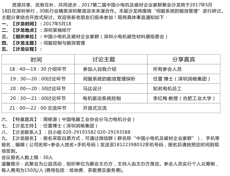 ü2017电机人沙龙(伺服能效管理、马达设计)