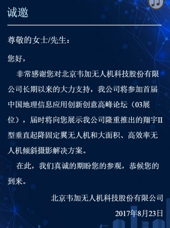 韦加无人机首届中国地理信息应用创新创意高峰论坛邀请函