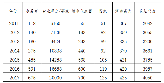 自从2011 年开始举办,至 2017年已成功举办了七届。从举办第一届起,智慧城市大会就已经成为一个为全球公司、公共机构、企业家,和研究机构搭建的平台,通过展示、学习、分享、互动和聚集灵感来共同支撑未来城市的发展,使参与者们能够充分地与业内经验丰富的专家和领导者们一起来分享行业信息、全球创新项目以及发展战略。对于城市而言,智慧城市大会是一个结识全球其他城市在智慧城市创新领域富有真知灼见的人物,例如市长、高级政客、城市执行部门负责人、专家,以及企业高管的高端平台,展示以及讨论领先的智慧城市项目。