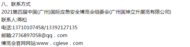 由中国机械工业集团有限公司、国际应急管理学会、广东省安全生产协会、广东省消防协会、广东省应急协会、广东省气象防灾减灾协会、广东省应急产业协会等单位共同组织,中国机械国际合作股份有限公司、广州立升展览服务有限公司、广州海骏会展商务有限公司联合承办的2021中国(广州)国际应急安全博览会将于2021年6月17-19日在保利世贸博览中心隆重举行。