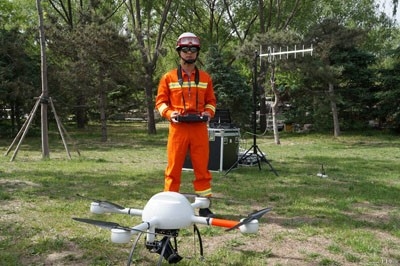 图:北京市消防局门头沟消防支队无人机训练场景。