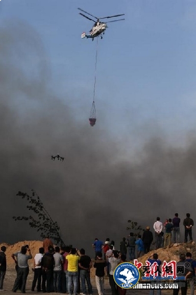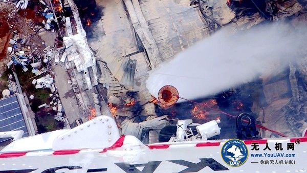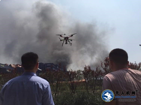 在这种危险品爆炸、大面积火灾面前,首批“逆行者”让无人机和直升机先行。无人机发挥监控监测作用,直升机压制火源防止扩散,而消防官兵在第二阵线防守。