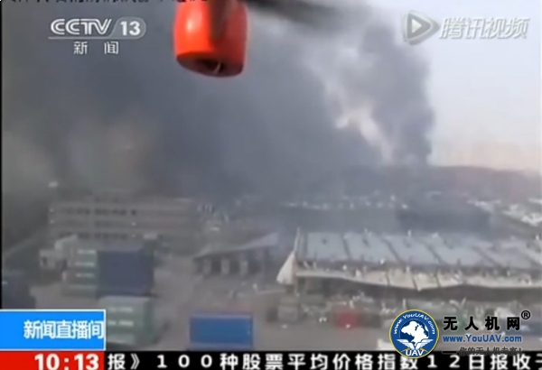 图:央视8月13日上午播出的无人机航拍画面,通过画面可以看出这个航拍侦察的无人机估计是北京市消防局的。