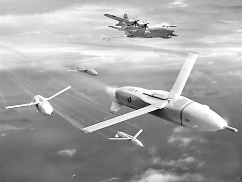 今年早些时候,美国国防部高级研究项目局发布一段模拟视频,演示这种无人机如何配合大型飞机作战。视频中,数架无人机在“母机”C-130运输机前执行侦察任务。当它们发现敌方目标后,C-130运输机发射无人机和巡航导弹,对目标实施打击。