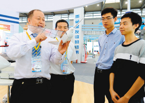 近年来随着微电子和微机械等技术的飞速发展,小型飞行器流行起来。在展会上,有一款扑翼自主航线基本型飞行器,有着两只透明翅膀状的扑翼,还有尖尖的鸟嘴。这款小鸟飞行器只有230克,50厘米长,飞起来像真的小鸟一样,据工作人员介绍,在试飞中还会吸引别的鸟跟着它一起飞。这款微型扑翼飞机除了能在机场起到驱赶鸟类的作用,更重要的是还能配合搜救人员找到被困在山林里的被困人员。