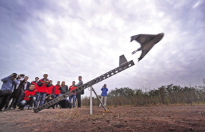在昨天的演练中,为尽快掌握火场周围情况,救援队伍地理信息采集分队,首先发射一架固定翼弹射式起飞X-8无人机。