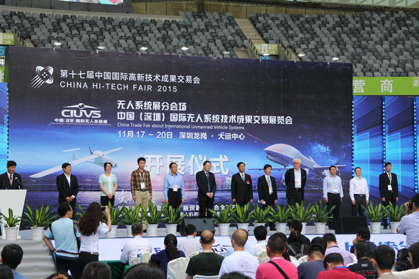第十七届高交会无人系统展以“创新创业创造智能机器,融资融智融合全球产业”为主题,遍邀无人系统代表性企业参展参会,展会集展览展示、技术交流、飞行展演、航拍大赛、创客专区、大会报告、商务洽谈为一体,展会现场举办有丰富多彩的大会交流、飞行竞赛、动态展演及商务洽谈活动。成都飞机设计研究所、贵州飞机设计研究所、中国航天电子技术研究院、中国航天空气动力技木研究院、中国兵器工业计算机应用技术研究所、北京空间机电技术研究所、中电 33 所、中电 36 所、易瓦特、安尔康姆、中航智等 110 余家无人机研发制造企业倾力助阵,无人机、无人船舶、无人车辆等国内外最新机型、技术与配套服务等无人系统全产业链覆盖。各方力量汇聚,共同打造了一场层次极高、规模超大、品种俱全的无人系统专题展。展会静态展演与飞行展演兼具,动静结合地展示了我国无人系统产业的最新发展成果,显示了我国无人系统产业的辉煌成果。