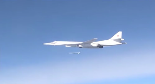 俄罗斯图160战略轰炸机发射X-101巡航导弹