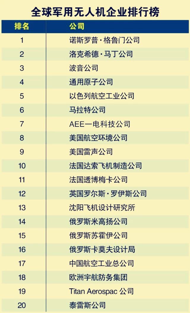 目前主要以规模和发展历程为主参考,并在民用无人机的基础上兼顾了军用,以满足部分发烧友,关注只是一个开始。