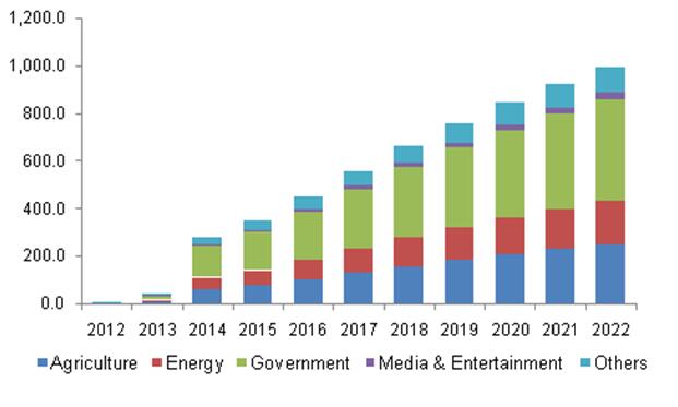 (图)美国商业无人机市场 按应用划分 (纵坐标单位为百万美元)