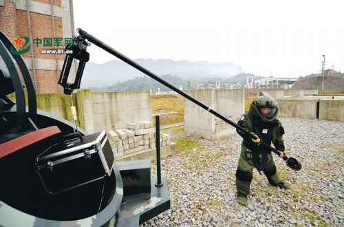 排爆机器人最远可以在100米外通过操控台操作取走爆炸物。记者在演练现场看到,一名战士操作着操控台,排爆机器人按照指定的方向前进,很快就将爆炸物拿起,放到防爆围栏内,两名战士迅速上前用防爆毯将防爆围栏盖住,危险就能排除了。“这个机器只能适用于平地,在一些条件比较复杂的地方就得用人工排除了。”队员演示了穿上防爆服、人工排除爆炸物的过程。一套人工排爆的防爆服等装备总重82千克,穿上后只能像机器人一样慢吞吞行动。