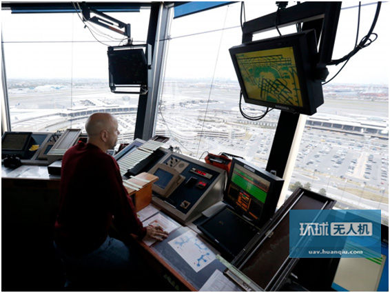 美国联邦航空管理局授权将近2500无人机商用飞行的请愿。图为空中交通指挥员在纽瓦克自由国际机场交通指挥塔中工作。拍摄于2015年5月21日。