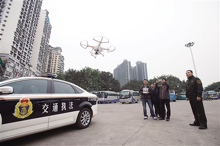 重庆商报讯 重庆首次启用无人机查“黑车”(非法营运车辆),布下“天罗地网”打击非法营运。时至年末,春运临近,市交通行政执法总队直属支队在主城区以各主要交通枢纽和商圈为重点区域正在进行非法营运集中整治。除了前期已经增设的多枚高清监控外,执法部门首次启用无人机查“黑车”。昨天,正式启用的无人机在陈家坪长途汽车站进行了试飞、巡逻。