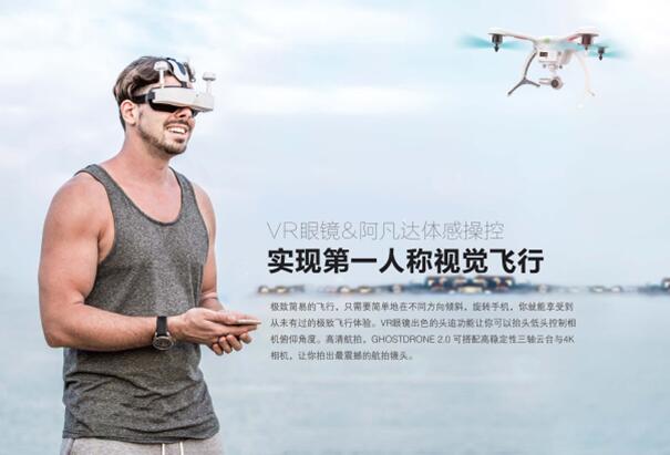 近日,亿航以卖关子的方式揭开了年度新品GHOST 2.0四轴无人机的“神秘面纱”。除了继承GHOST 1.0的优点,如一键悬停,指点飞行外,还首次推出了“阿凡达”体感操控模式,用户只需通过带有亿航APP软件的移动设备,即可操控无人机前进、倾斜、摆动、旋转。旗舰版还开创性的将无人机与带有头部姿态追踪功能的VR眼镜相结合,让大众用户在体验无人机智能操控的同时,感受第一人称视角的航拍观感体验。