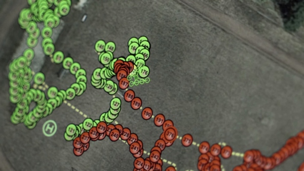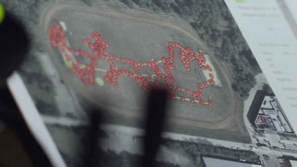 ▼然后监控航拍器的飞行路线,并且在地面进行拍摄。最复杂的是圣诞老人与鹿的图案,完成这组光绘需要设计四组、每组最多391个飞行点程序,飞行10分钟才能完成。