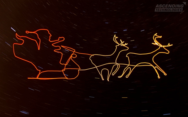 近日,航拍器制造商Ascending Technologies就利用自家的航拍器,配合精密的飞行程序,创作出了众多只用在长曝下才会现身的光绘圣诞灯饰。