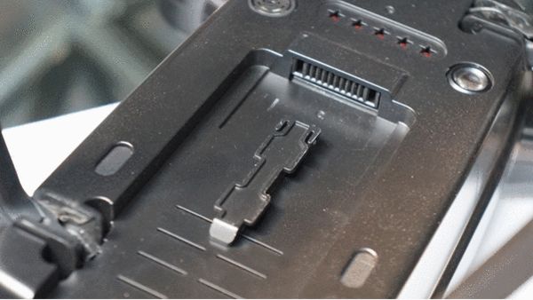3:云台部分,我们测试的是搭载Gopro云台的机型,Gopro的挂在是用2颗手拧螺丝锁紧,不需要使用工具,安装方便。云台和机体的安装是拼插形式,这样的设计确实方便。