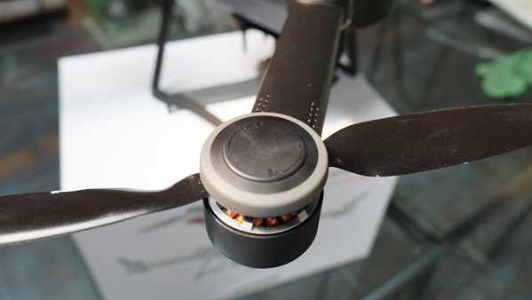 机臂折叠的地方有一定的虚位,飞机在起飞的时候可以明显看到机臂上扬,这款无人机的重量比较轻,轻微的变形初期不会影响太多的飞行安全,虽然机臂折叠有限位,但不知道长时间使用的磨损后,会不会对飞行安全有影响。